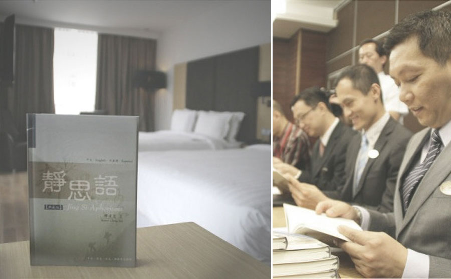 在某次下榻印尼酒店,伍銳文師兄看到酒店房内擺放了《聖經》,到泰國時又發現房裡擱置了佛教經典,這讓他靈機一動,證嚴上人的《靜思語》無宗教色彩,但句句是智慧法語,必能使人與人之間的互動矛盾,心靈上的空虚得以撫慰。
