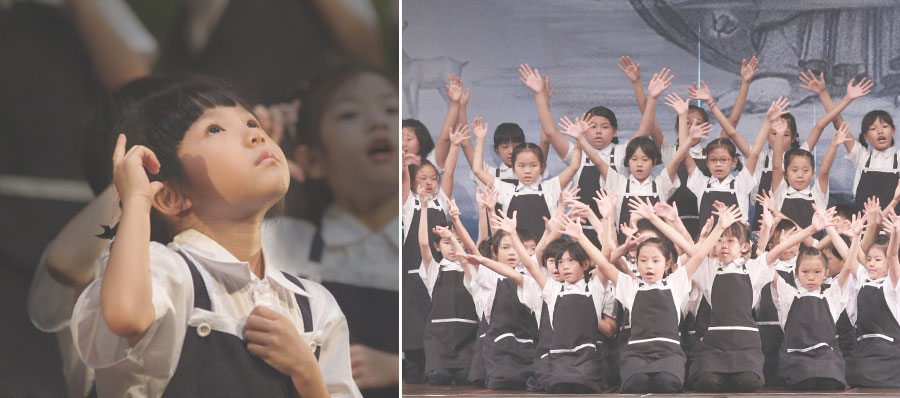 以當天演繹的規格來要求彩排練習,單單是一首〈一念之間〉,中間被喊停的次數不下五次,一百多位小朋友們仍耐心地配合著,讓現場的爸爸媽媽們看得好感動,智慧型手機的相機與錄影幾乎沒停過,因為不想遺漏孩子最用心的鏡頭。