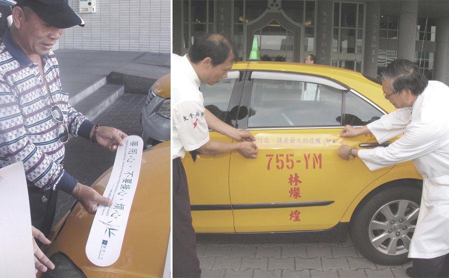 計程車司機石文毅,則是挑了一句很喜歡的靜思語「付出,就是最大的收穫」,張貼在計程車的後面擋風玻璃上,他分享,這句靜思語,直接代表計程車的精神,因為,計程車是服務業,是一個直接面對客人的行業,要付出更多的心力與親和力,客人才會願意搭我們的車子。他也表示,響應靜思好話滿街跑,會讓自己往後跑車為客人服務時,會得到更好的收穫。