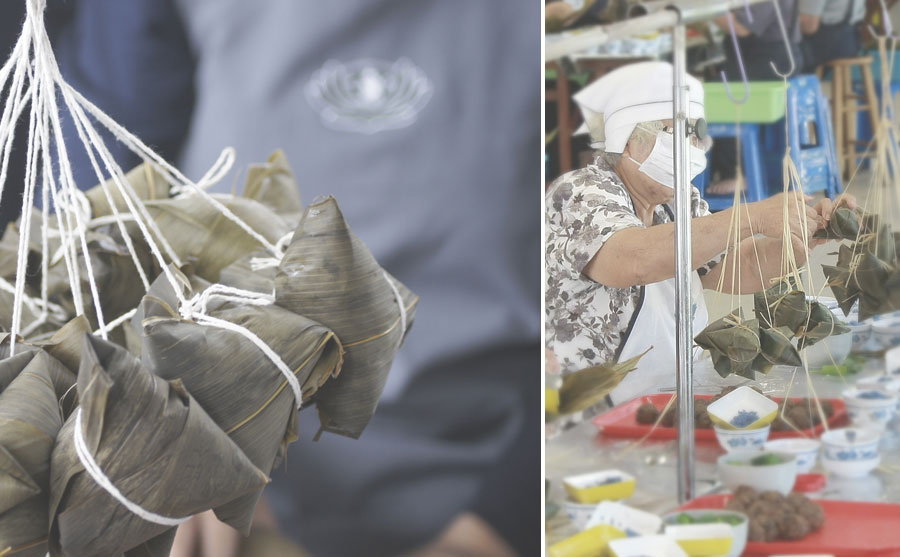 慈濟志工吳慈媄:「我們的同仁們有很多都是來自異鄉的,他們都沒有回家。」營養美味的果仁,配上燕麥、香積飯,志工把心意通通包進餡料中。這幾串粽子,就是感謝佳節前夕仍堅守岡位的慈濟志業體同仁,最好的禮物。