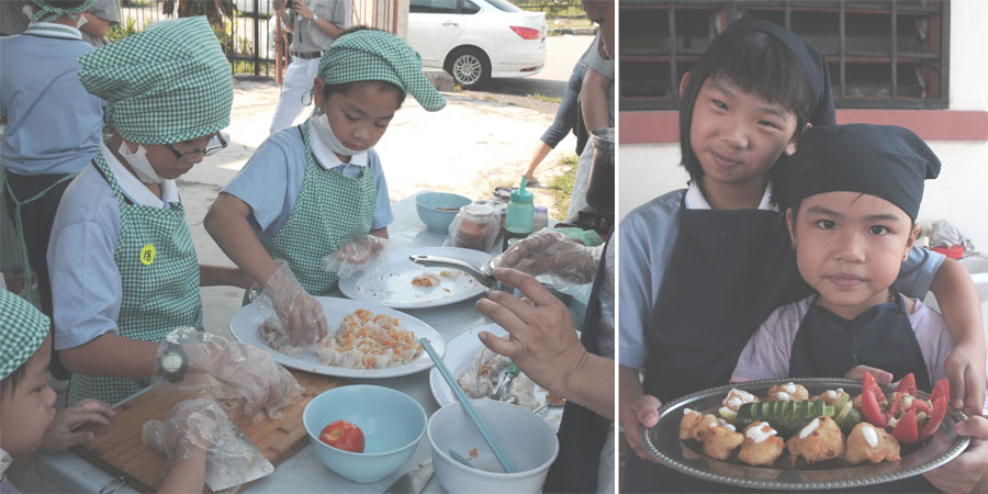 學員分工合作,忙著切菜、調配、開火煮食,隊輔媽媽們在旁協助關切,評審人員則是穿梭各組間,進行評審工作,評分標準是以花費少、菜色豐、用水少、餐後廚餘少等項目做為標準。