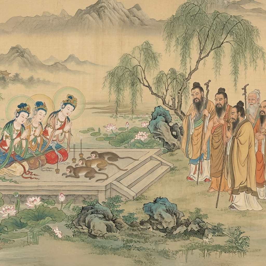 「那群婆羅門修行者因為譏笑比丘像猴子,所以墮落為猴身;又因一念善,學比丘恭敬禮拜,所以很快就脫離畜生道而化生為天人。」