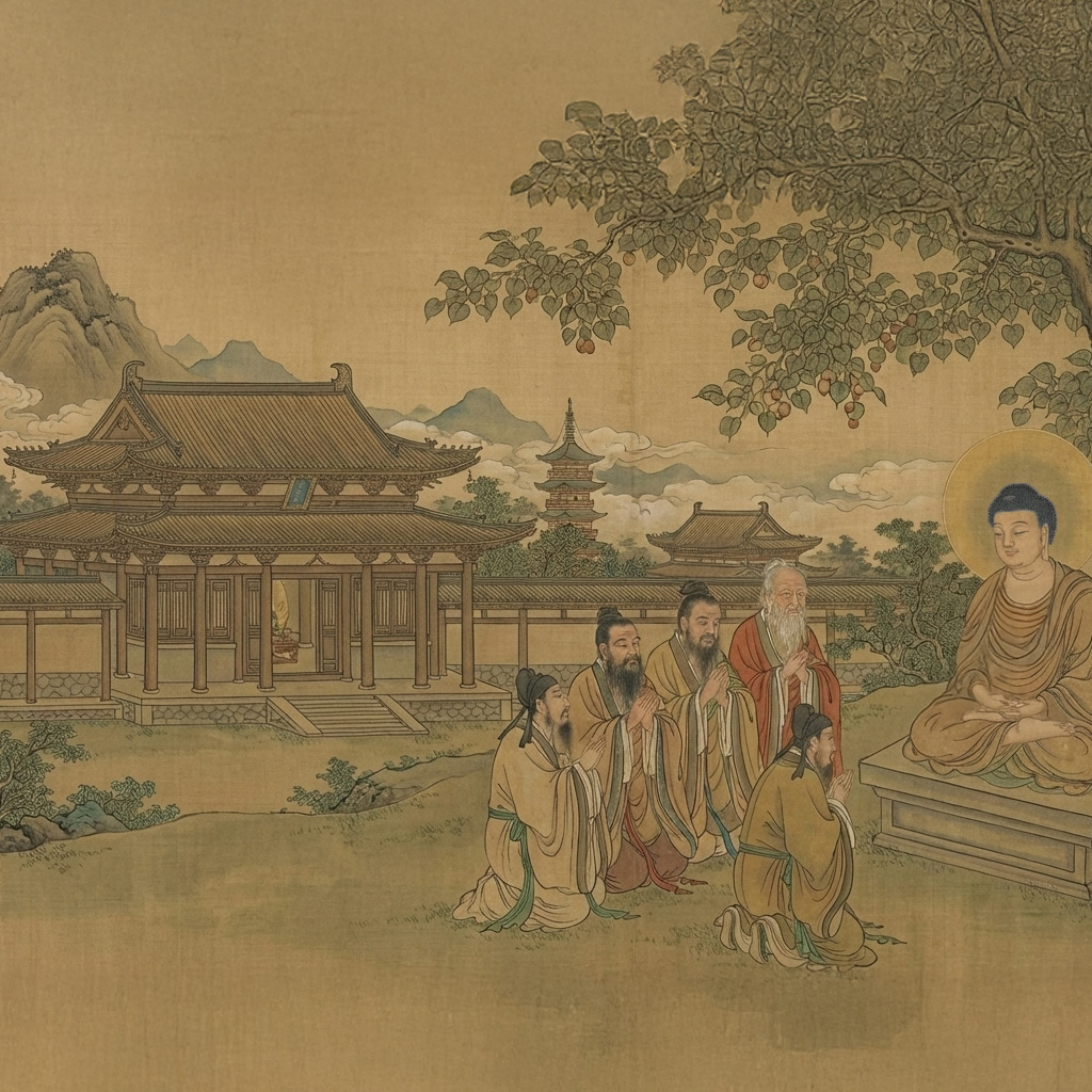 婆羅門教徒心想:真有佛出現在人間嗎?真有妙法可以讓畜生化為天人嗎?為了尋找答案,他們走了很遠的路,來到佛陀的精舍向佛陀求法。
