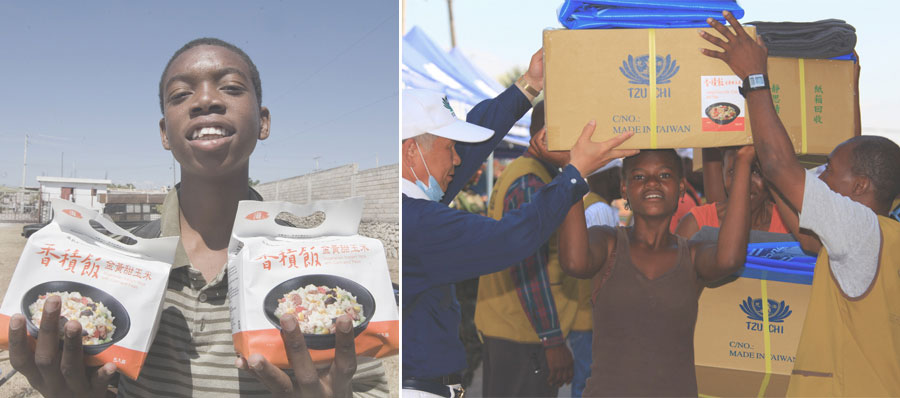 慈濟志工海外賑災時,於缺乏能源的克難環境中,需便於運送、不必烹煮,就能讓人吃飽,又兼具衛生、安全與營養的糧食;一公斤的香積飯等於三公斤的大米,即使用冷開水也可沖泡,成為賑災最佳熱食來源。海地驚世強震,路斷屋毀傷亡慘重,證嚴 上人心繫災民,呼籲大家要虔誠祈禱,以感恩心造福。