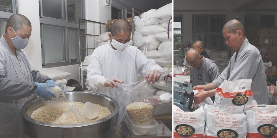 二00六年開始,上人一個單純想法,引發弟子們著手研發香積飯。其製作過程乃選用在地好米→放米計量標準化控制→嚴選食材品質管控→品質監控蒸飯→煮熟的飯進入乾燥→完全乾燥→乾燥收成。優點一、乾燥式的香積飯,水活性低不易酸敗。二、營養完全保留住,食用後不易引起胃酸。